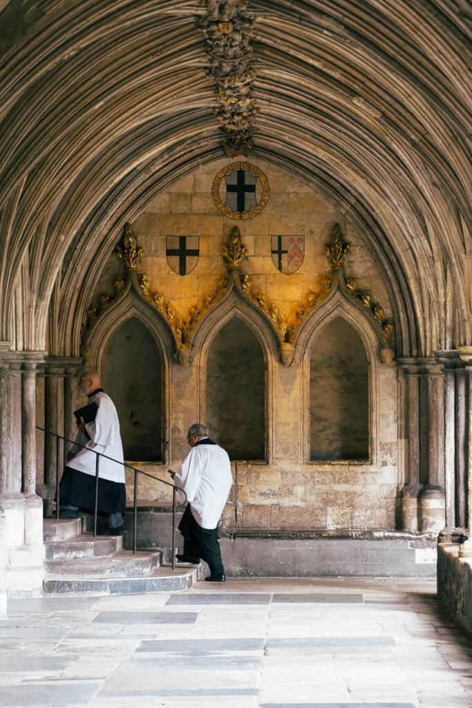 Op straat bewegen mensen op het ritme van muziek en alledaags rumoer, terwijl in de kathedraal stilte en devotie de ruimte vullen.